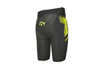 En la parte superior del muslo y parte de la zona de los glúteos, tres capas de material viscoelástico ajustadas sobre una malla elástica extremadamente resistente al desgarro y al desgaste, que garantiza: ventilación, protección, ligereza.